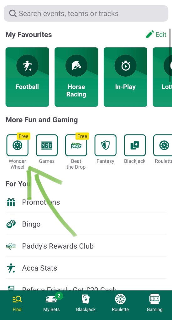 Anyone above 18 years of age can play, as long as you have a Paddy Power account. You simply log on, usually via the app, and then navigate to the “Wonder Wheel” icon under the “Find” burger menu.