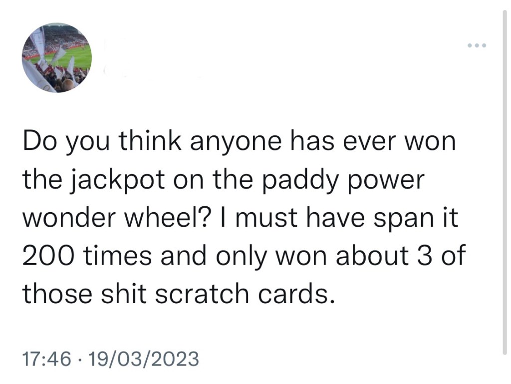 The thing is, you’re very unlikely to win the jackpot. At least, in my own experience and the experience of the punters Tweeting about it.