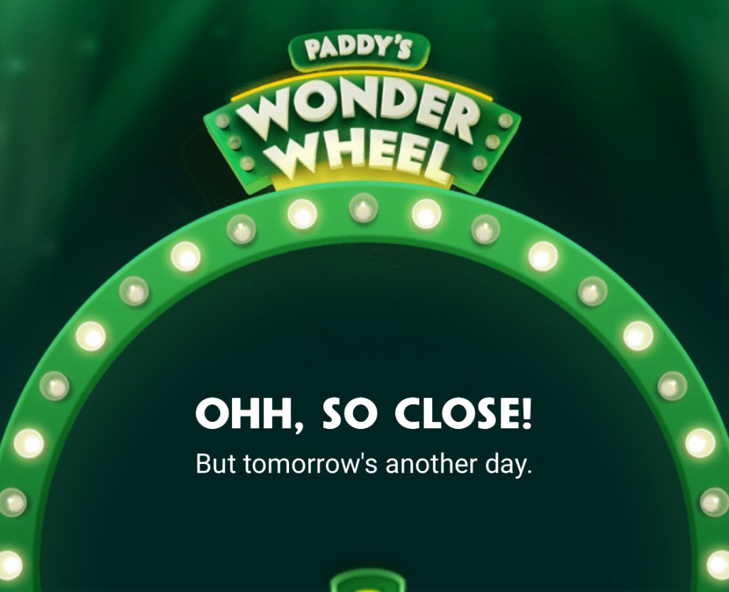 It’s worth noting that I have won a few scratch cards and free spins on Paddy’s Wonder Wheel, but I’m yet to hit the cash jackpot.